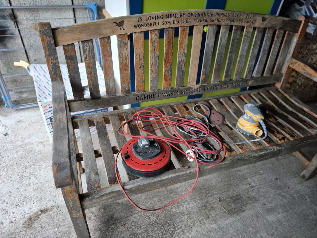 Frankie’s son, Nick, took the bench home, rubbed it down and gave some fresh varnish, before putting it back in its usual spot.